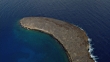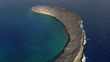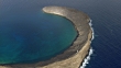 Aerial view of Molokini Island in the Pacific Ocean off the coast of Maui in Hawaii.