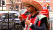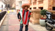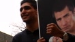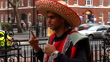 Amir Khan photocall; ENGLAND: London:EXT*** FLASH PHOTOGRAPHY ***Various of Amir Khan (Boxer) (wearing sombrero and poncho) posing for photocall Frank Warren (Boxing promoter) watchingKhan posing with fist through photograph of Mexican boxer Marco Antonio Barrera