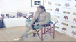 MOBO Awards 2006 launch party; ENGLAND: London: Camden:INT***Intermittent flash photographyGina Yashere (comedian) sat in chair posing for photocall / Talking on mobile phone SOT