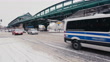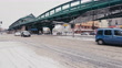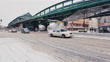 Berlin Eberswalder Strasse Urban City Winter Skyline Street Scene with Police Car in Action and Snow Storm - Vídeo de stock 4K