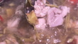 Sopa de pollo y verduras hirviendo a fuego lento en caldo - Vídeo de stock 4K