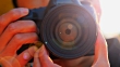Close-up of young man photographing with camera at sunset