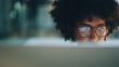 4k video footage of a young designer working on a computer in an office at night