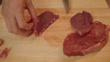 Cortar el filete de lomo en tiras - Vídeo de stock 4K