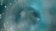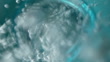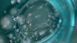 A macro shot of carbonated water effervescing in a bright blue glass. Energetic bubbles swirl and pop, whilst delicate bubbles emerge under the rippling surface.