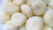 Delicious peeled water chestnuts ready to eat on a white plate on a wooden table. It’s nutritious and high in fiber. - Vídeo de stock 4K