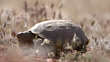 Desert Tortoise (Gopherus agassizii) side view, eating foxtails during a drought year in the Mojave Desert.