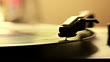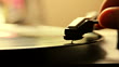 Start to playing an LP Disk. Vinyl, phonograph, analog disc.