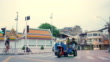Cheerful friends enjoy memorable moments together in a Tuk Tuk.