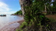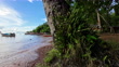 Lush Agrostophyllum orchids demonstrate Epiphytism by clinging to a coconut tree for support, deriving nutrients from air, rainwater, and decaying organic matter. Thriving in diverse habitats, these orchids adorn the backdrop of a pristine Thai beach, an exquisite illustration of nature's symbiosis. 4k footage with copy space filmed in Ko Lanta, Krabi province, Thailand.