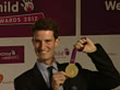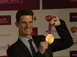 CLEAN: Exterior shots Peter Wilson, Double Trap London 2012 Olympic Champion poses for the press with his gold medal at a WellChild Charity event at the Parl Lane hotel Celebrities at the WellChild Charity Event on September 03, 2012 in London, England (Footage by Sky News/Getty Images)