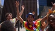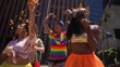 Friends having fun at the street carnival - Vídeo de stock 4K