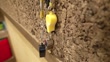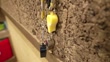 This clip features two whistles hanging from a bulletin board inside a roller skating rink.