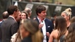 NEW YORK, NEW YORK - JUNE 16: George Russell, Javier Bardem, Toto Wolff, and Lindsey Vonn arrive to the "F1" World Premiere in Times Square on June 16, 2025 in New York City. (Footage by James Devaney/GC Video)