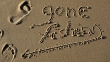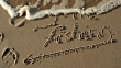 Full HD 1920x1080 movie. Footprints and inscription "gone fishing" is removing by the wave.