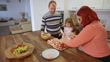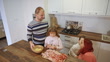 Join the culinary fun! In this video, happy parents and children are joyfully arranging a delightful assortment of cold cuts and cheese on a platter in their home kitchen. Laughter and teamwork create a festive atmosphere, turning food preparation into a delightful family bonding experience.