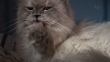 A Himalayan cat cleans itself.