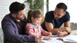 Inspirational Gay couple with adopted daughter at home, having fun, drawing and learning - Vídeo de stock 4K