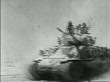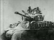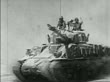 B/W 1967 Israeli tank with 2 cheering soldiers passing camera / Six Day War / newsreel