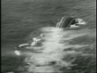 B/W July 26, 1956 AERIAL ship, Andrea Doria, sinking in ocean after crash / newsreel