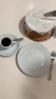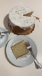 High angle view serving slice of lemon cake for delicious dessert at hoem with black coffee