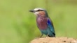 Lilac-breasted Roller, Coracias caudatus, on termite mound, Masai Mara National Reserve, Kenya, Africa - Vídeo de stock 4K