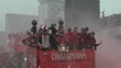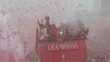 Premier League: Liverpool victory parade; ENGLAND: Merseyside: Liverpool: EXT Various shots of Liverpool FC football players on open-top bus past cheering crowds - victory parade to celebrate winning Premier League (filmed from bus travelling ahead of Liverpool bus) - players holding up Premiership trophy. Including Dominik Szoboszlai, Trent Alexander-Arnold, Mohamed Salah, Curtis Jones, Luis Diaz, Darwin Nunez, Diogo Jota