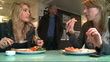 London 2012 Olympic Games: 'Inside Track': Athletes' diet and training regime; INTTasha Danvers interview SOTCUTAWAY (ITN LIB / ITV News)Two women athletes (?) sitting in canteen eating healthy meal (salad and vegetables)