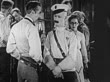 B/W 1927 man in uniform (Ben Turpin) looking at long cigar cross-eyed / feature - Vídeo de stock