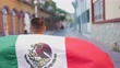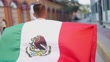 Man walking while holding a mexican flag in the street