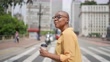 Mujer de negocios madura que cruza la calle y mira hacia otro lado a la ciudad - Vídeo de stock 4K