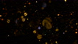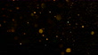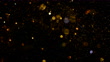 A slow motion video of de-focused, falling, orange and multi colored glitter particles against a black backdrop. Filmed in 4K.