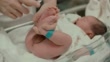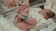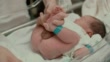 Handheld shot of asian mother putting diaper on her newborn baby boy(0-1 months) in hospital nursery room, Bangkok Thailand, 4K Resolution