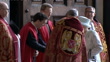 Various shots of royals - the Queen, Prince Charles, Prince Harry, Prince William, Duchess of Cambridge - along in procession to front of cathedral