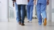 4k video footage of a group of unrecognizable doctors walking in a hospital