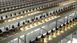 CBD oil in glass bottles on a production line inside a pharmaceutical factory, making medical marijuana.