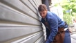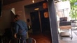Hombre propietario abriendo la puerta de su cafetería - Vídeo de stock 4K