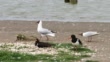 Oystercatcher, Haematopus ostralegus nesting amongst a colony of Black Headed Gull, Chroicocephalus ridibundus at Leighton Moss, Lancashire, UK.