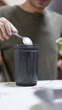 Verter té verde en una botella de proteínas - Vídeo de stock 4K