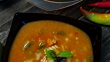 Homemade vegan minestrone soup and ingredients for preparing it on the table. Close-up overview