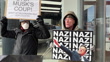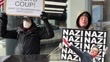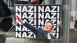 NEW YORK, NEW YORK - FEBRUARY 9: A protestor holds up an image of Elon Musk with the word "Nazi" behind him as activist rally outside a Tesla showroom on the West Side of Manhattan on February 9, 2025 in New York City. The rally is a direct response to the Trump administration targeting agencies and slashing the federal workforce led by Elon Musk, the tech billionaire, who is leading the so-called Department of Government Efficiency (DOGE) and has been given access to critical systems across the federal government. (Footage by Michael Nigro/Getty Images)
