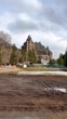 Puddle reflection of Banff Springs Hotel in Alberta, Canada - April, 2024
