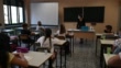TURIN, ITALY - SEPTEMBER 15: Pupils sit at desks to maintain social distancing as they attend their first day of school on September 15, 2020 in Turin, Italy. Don Milani school in the Vinovo district will start the fall semester with a model to ensure a safe reopening by installing sinks and soap dispensers outside each classroom, creating social distancing screens in classrooms and dining areas and installing hand sanitiser dispensers. According to the Ministry of Health, Coronavirus infection rates are climbing again in Italy from an average of 1000 new cases per day. (Photo by Diego Puletto/Getty Images)