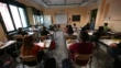 TURIN, ITALY - SEPTEMBER 15: Pupils sit at desks to maintain social distancing as they attend their first day of school on September 15, 2020 in Turin, Italy. Don Milani school in the Vinovo district will start the fall semester with a model to ensure a safe reopening by installing sinks and soap dispensers outside each classroom, creating social distancing screens in classrooms and dining areas and installing hand sanitiser dispensers. According to the Ministry of Health, Coronavirus infection rates are climbing again in Italy from an average of 1000 new cases per day. (Photo by Diego Puletto/Getty Images)