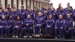 LONDON, ENGLAND - MARCH 17: (Top row, L-R) Rich Waldron, Adam Backhouse, Morgan Dally, Gary Callier, Steve Sampher, Anthony Booth, Lee Thomas, Charlie Holford, Peter Saunders, Matthew Trigg, Richard Davis, David Moncrieff, Ben Gallagher, Lynsey Kelly (Second row, L-R) Paul Charles, Allan McSween, Amanda Sands, Ross Freer, Craig Godsall, Team Captain James Rogers, Paul Case, David Jarvis, Scott Robertson, Carl Windebank, Jonny Ball, Leo Buscombe, James Wren (Third row, L-R) Claudine Martin, Elisabeth Lee, Alexandra McClellan, Stacey Denyer, Rebecca York, Alan Dyer, Wali Noori, Robert Grantham, Jenny Hartley, Katrina Brown, Nathan Huddy, Vice Captain David Curtis, Terry Jones, Jody Nichols, Liam Guatella, Stephen Hooper, Codey Morton (Front row, L-R) Tilly Fisher, Richard Potter Vice Captain Kelly McVitty, Kenetha Franklyn, Martha Prinsloo with support dog Daisy, Jules Allen, Chris Anslow, Clare Gibson, Michael Evans, Jay Saunders with support dog Hawk, Danii Stevens, Paul Hartley, David Argyle and Emmanuel Akor attend a photocall to announce the Invictus Games Team UK line-up on March 17, 2023 in London, England. The Invictus Games will be held in Germany for the first time in September 2023. (Footage by Ming Yeung/Getty Images)