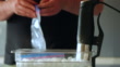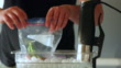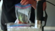 Rump steak sous vide cooking. Raw rump steak, rosemary and olive oil in polyethylene zip-loc sous vide bag. Immersion circulator, water, insulation balls and polycarbonate water bath.