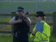 Channel Tunnel: security:; a)NAT (Phillips,Oliver)ENGLAND: Kent:EXTMS Policeman in flak jacket holds rifle and policewoman in fluorescent jacket standNr Folkestone:INT CARMS TRACK FORWARD along road as directed by police into road check areaEXTBV Police stand as car towards at checkpoint ZOOM ING/A Police helicopter hoveringINT HELICOPTERTLS Rail lines at approach to tunnel seen through windowAIRV Tunnel rail lines and approach roads PAN L-RINTCMS Det Supt Cliff Grieve (Kent Police) intvw SOT- We have been working closely with French police and Eurotunnel to design out the opportunities for terrorismEXTLMS EU logo metal sign PAN R-L as cars up to British checkpoint at tunnel frontierBV Car up to frontier boothCMS Badge on French official's arm REFOCUS to another official behind as car through French frontierLA Official as cars past him to BVCMS Frank Gregory (Security Advisor) intvw SOT- Police on both sides of the Channel have been involved in security from day oneINT TUNNELBV TRACK FORWARD behind fireman in fluorescent jacket and helmet as along in tunnelTMS Firemen wearing black coats with fluorescent stripes and helmets attend to compatriot on stretcherTILT UP and R-L other firemen discussingINT TRAIN2 SHOT Hall and Alastair MortonCMS Alastair Morton (Chairman, Eurotunnel) intvw SOT- It's a great deal less frightening than other forms of transportINT TRAIN/INT TUNNELLMS TRACK FORWARD as fast along rail trackLMS TRACK BESIDE side of tunnel as out into the open beside track and grassy slopeDUSK/INT TRAINLMS TRACK FORWARD as along track and controls in front of train seen in f/gTX 29.4.94/NAT