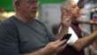 Hombres mayores comprando algunos productos en el supermercado mientras usan el teléfono inteligente - Vídeo de stock HD