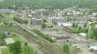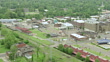 WS AERIAL Shot of railroad tracks and town buildings / Clarksdale, Mississippi, United States - Vídeo de stock HD
