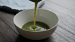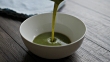 slow motion pouring broccoli soup in a bowl,shot by 180fps